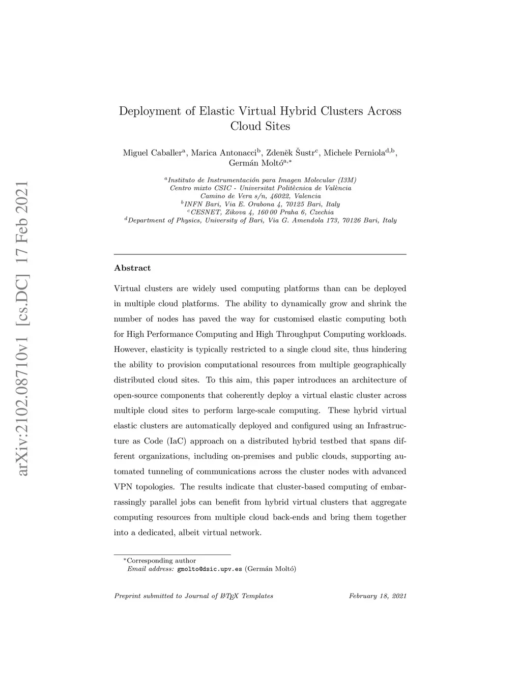 Deployment of Elastic Virtual Hybrid Clusters Across Cloud Sites