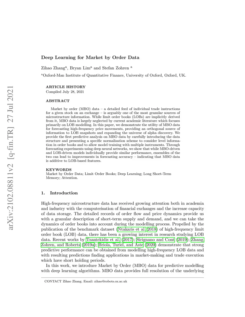 Deep Learning for Market by Order Data