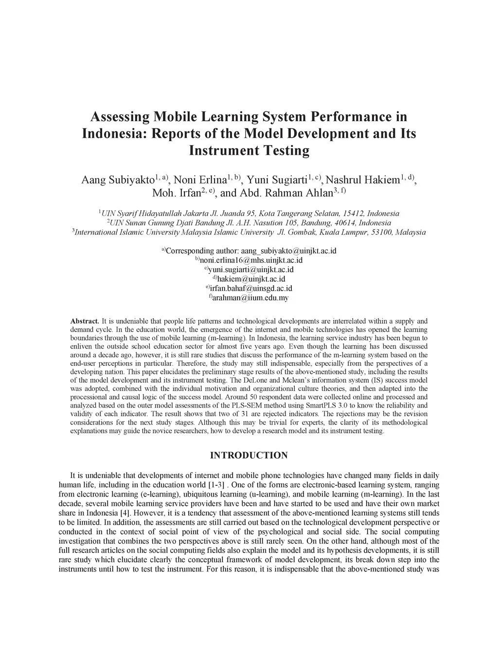 Assessing Mobile Learning System Performance in Indonesia: Reports of