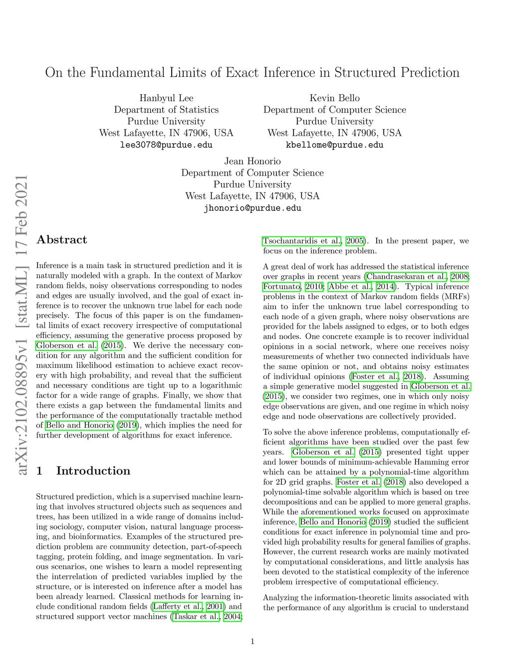 On the Fundamental Limits of Exact Inference in Structured Prediction