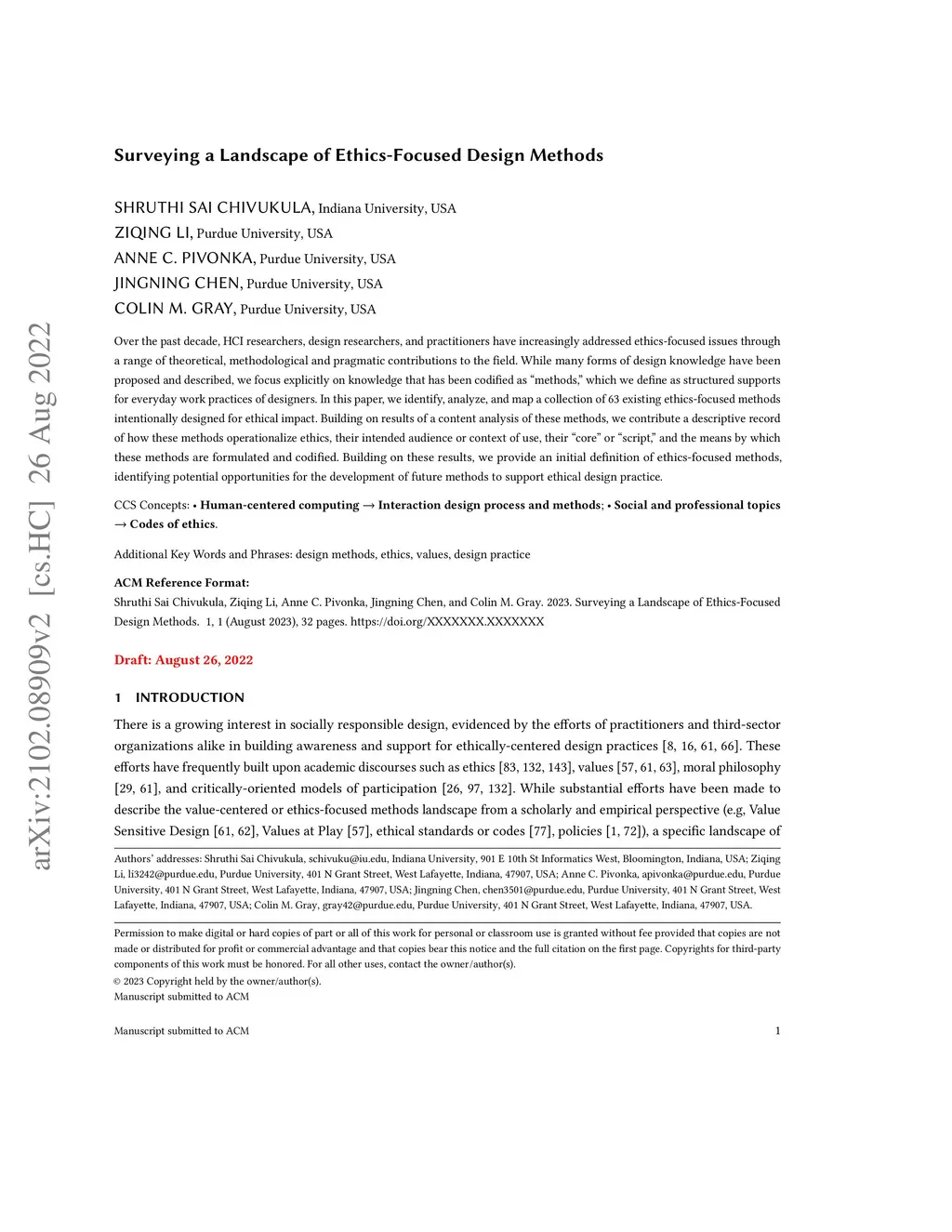 Over the past decade, HCI researchers, design researchers, and practitioners have increasingly addressed ethics-focused issues through a range of theoretical, methodological and pragmatic contributions to the field. While many forms of design knowledge have been proposed and described, we focus explicitly on knowledge that has been codified as "methods," which we define as any supports for everyday work practices of designers. In this paper, we identify, analyze, and map a collection of 63 existing ethics-focused methods intentionally designed for ethical impact. We present a content analysis, providing a descriptive record of how they operationalize ethics, their intended audience or context of use, their "core" or "script," and the means by which these methods are formulated, articulated, and languaged. Building on these results, we provide an initial definition of ethics-focused methods, identifying potential opportunities for the development of future methods to support design practice and research.