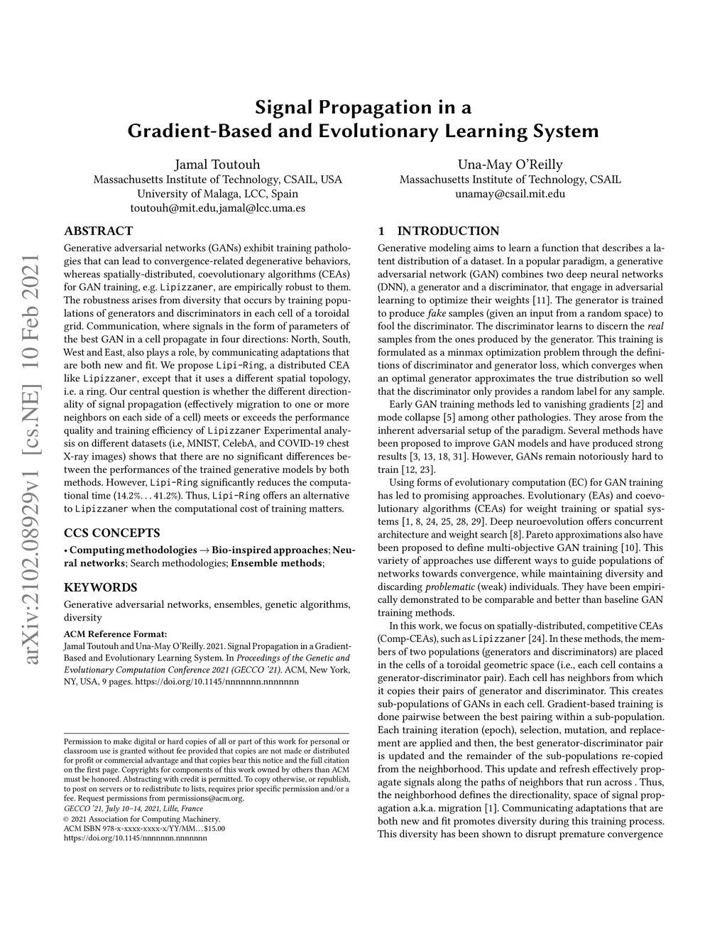 Signal Propagation in a Gradient-Based and Evolutionary Learning System