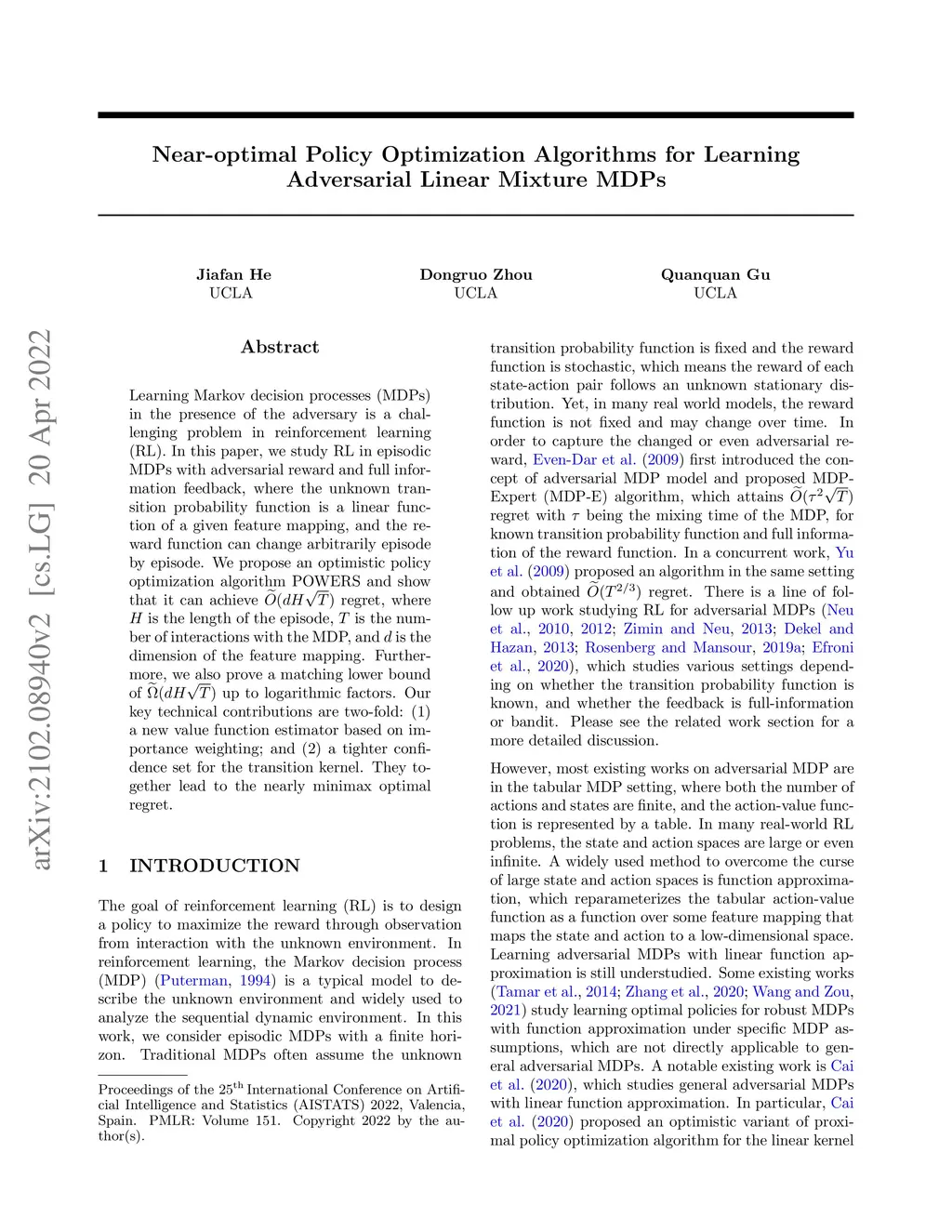 Near-optimal Policy Optimization Algorithms for Learning Adversarial
