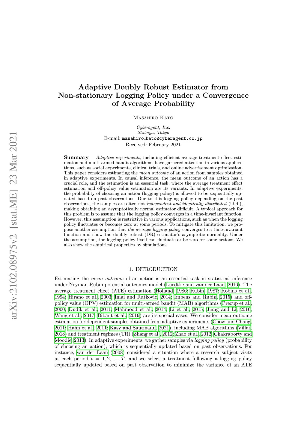 Adaptive Doubly Robust Estimator from Non-stationary Logging Policy