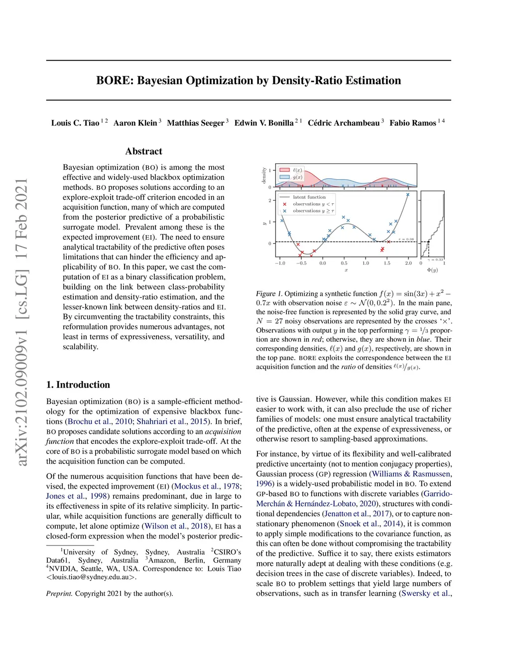 BORE: Bayesian Optimization by Density-Ratio Estimation