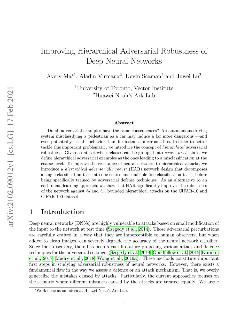 Improving Hierarchical Adversarial Robustness of Deep Neural Networks