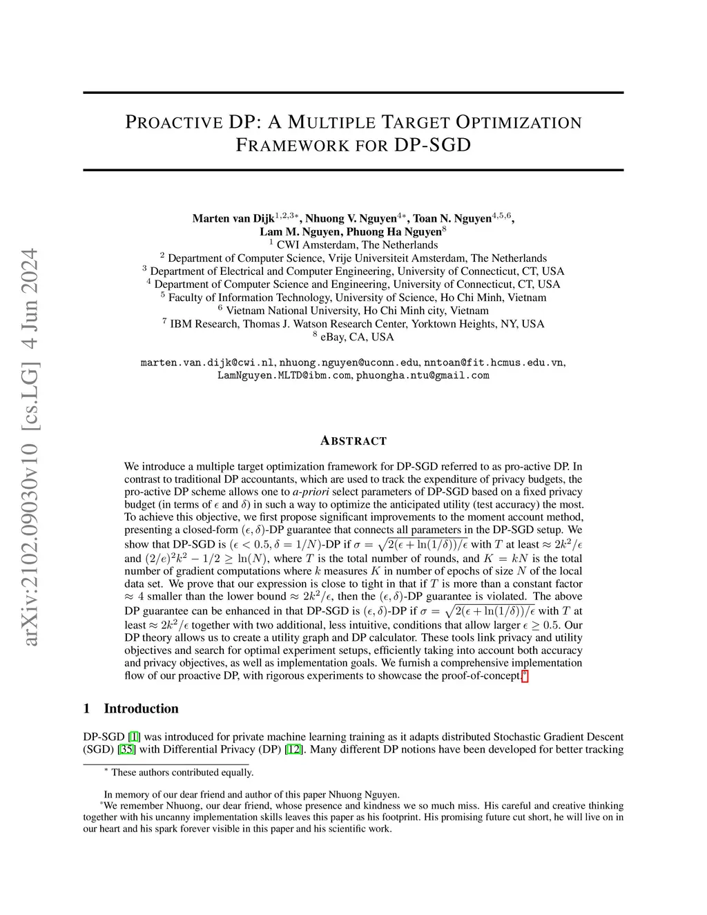 We introduce a multiple target optimization framework for DP-SGD referred to as pro-active DP. In contrast to traditional DP accountants, which are used to track the expenditure of privacy budgets, the pro-active DP scheme allows one to a-priori select parameters of DP-SGD based on a fixed privacy budget (in terms of and ) in such a way to optimize the anticipated utility (test accuracy) the most. To achieve this objective, we first propose significant improvements to the moment account method, presenting a closed-form -DP guarantee that connects all parameters in the DP-SGD setup. We show that DP-SGD is -DP if with at least and , where is the total number of rounds, and is the total number of gradient computations where measures in number of epochs of size of the local data set. We prove that our expression is close to tight in that if is more than a constant factor smaller than the lower bound , then the -DP guarantee is violated. The above DP guarantee can be enhanced in thatDP-SGD is -DP if with at least together with two additional, less intuitive, conditions that allow larger . Our DP theory allows us to create a utility graph and DP calculator. These tools link privacy and utility objectives and search for optimal experiment setups, efficiently taking into account both accuracy and privacy objectives, as well as implementation goals. We furnish a comprehensive implementation flow of our proactive DP, with rigorous experiments to showcase the proof-of-concept.