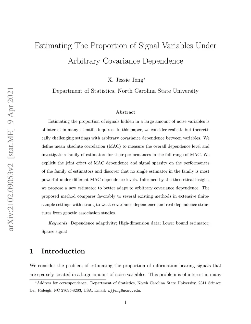 Estimating the proportion of signals hidden in a large amount of noise variables is of interest in many scientific inquires. In this paper, we consider realistic but theoretically challenging settings with arbitrary covariance dependence between variables. We define mean absolute correlation (MAC) to measure the overall dependence level and investigate a family of estimators for their performances in the full range of MAC. We explicit the joint effect of MAC dependence and signal sparsity on the performances of the family of estimators and discover that no single estimator in the family is most powerful under different MAC dependence levels. Informed by the theoretical insight, we propose a new estimator to better adapt to arbitrary covariance dependence. The proposed method compares favorably to several existing methods in extensive finite-sample settings with strong to weak covariance dependence and real dependence structures from genetic association studies.