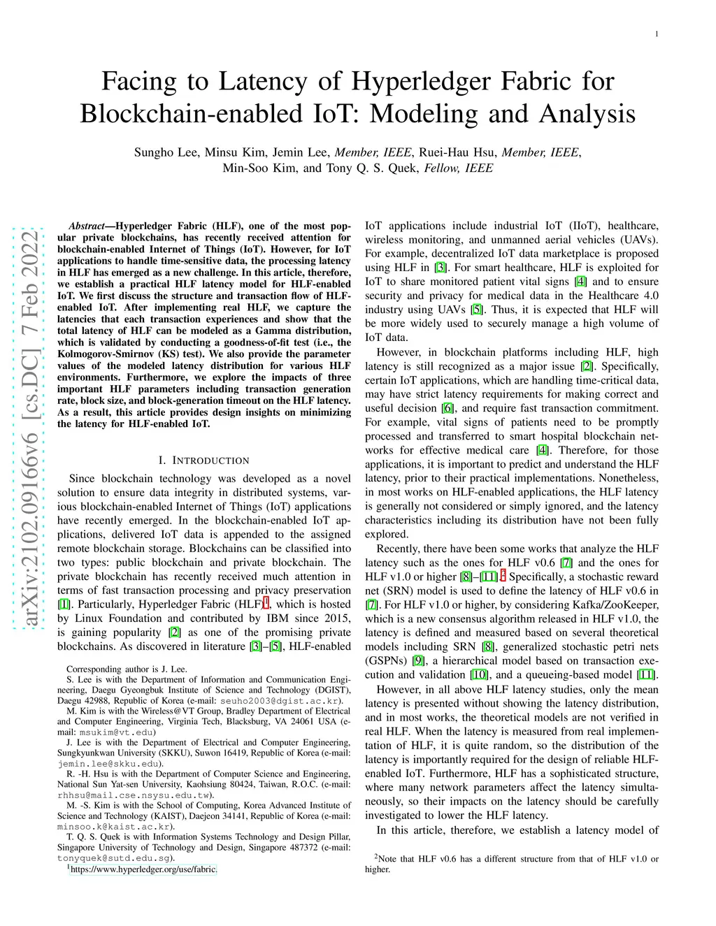 Facing to Latency of Hyperledger Fabric for Blockchain-enabled IoT: