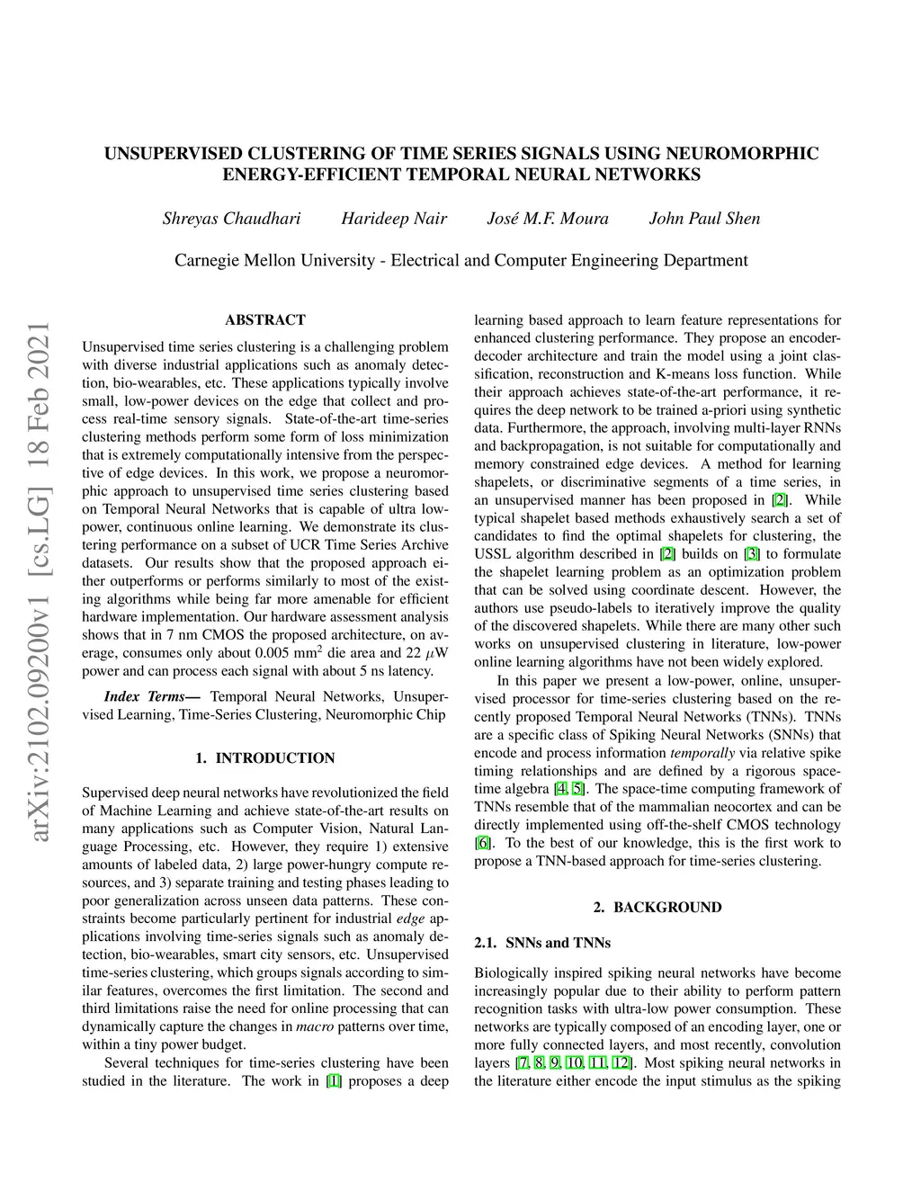 Unsupervised Clustering of Time Series Signals using Neuromorphic