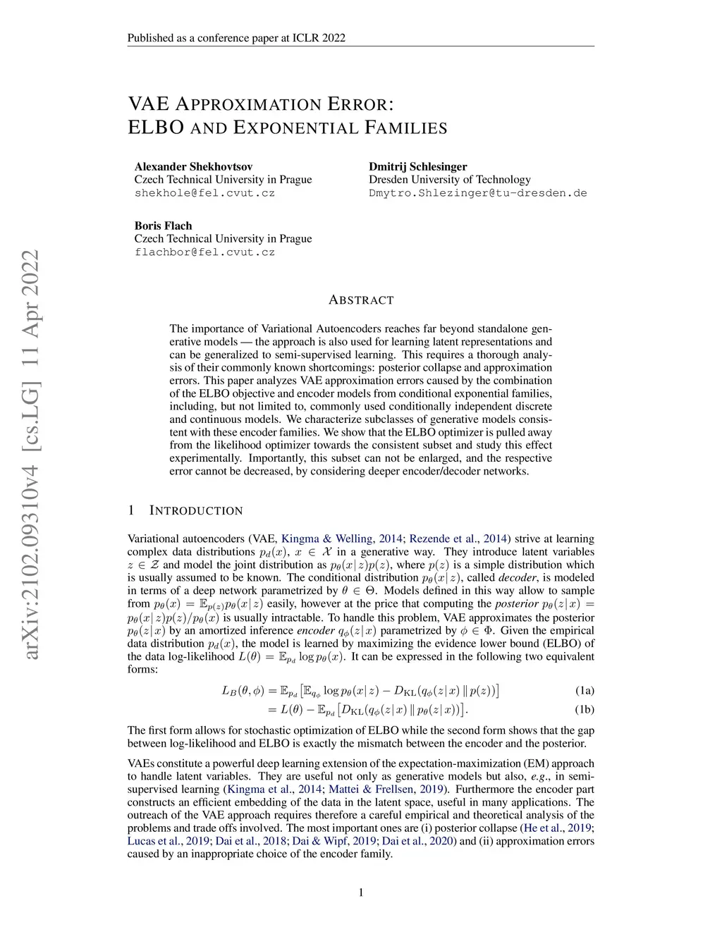 The importance of Variational Autoencoders reaches far beyond standalone generative models -- the approach is also used for learning latent representations and can be generalized to semi-supervised learning. This requires a thorough analysis of their commonly known shortcomings: posterior collapse and approximation errors. This paper analyzes VAE approximation errors caused by the combination of the ELBO objective and encoder models from conditional exponential families, including, but not limited to, commonly used conditionally independent discrete and continuous models. We characterize subclasses of generative models consistent with these encoder families. We show that the ELBO optimizer is pulled away from the likelihood optimizer towards the consistent subset and study this effect experimentally. Importantly, this subset can not be enlarged, and the respective error cannot be decreased, by considering deeper encoder/decoder networks.