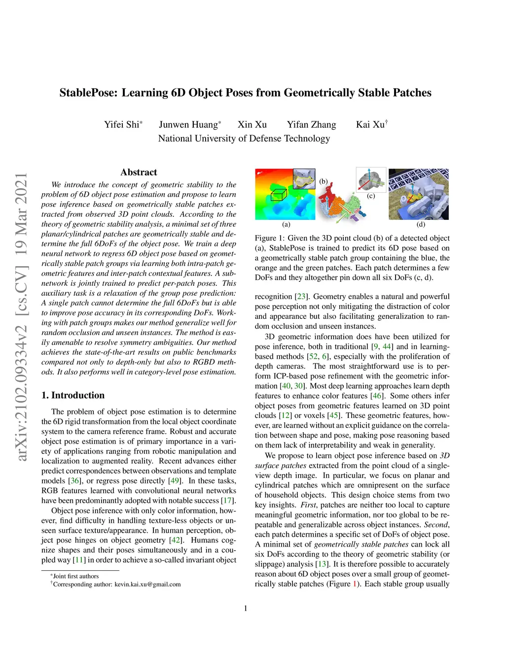 StablePose: Learning 6D Object Poses from Geometrically Stable Patches