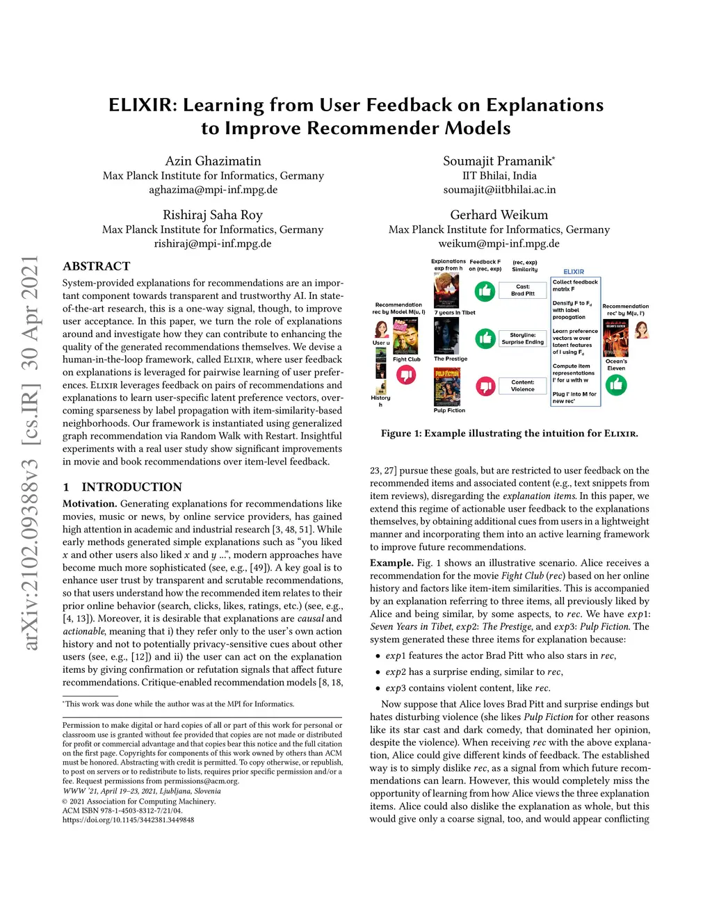ELIXIR: Learning from User Feedback on Explanations to Improve