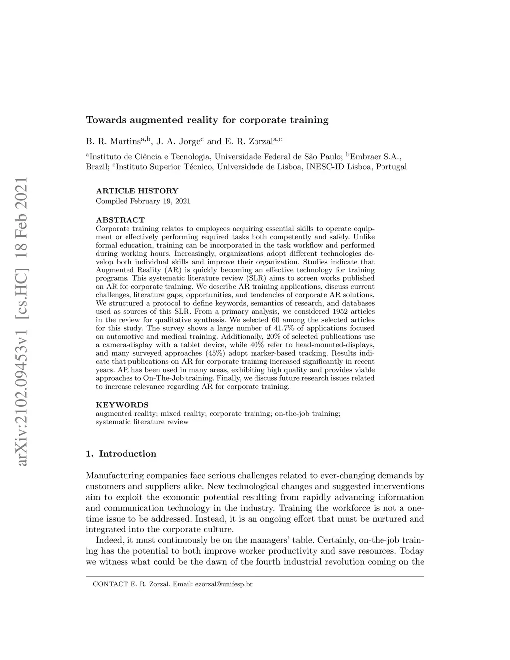 Towards augmented reality for corporate training