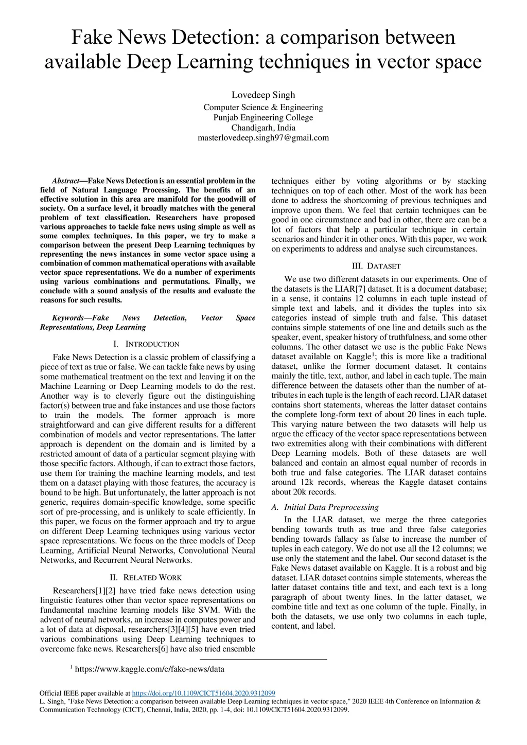 Fake News Detection: a comparison between available Deep Learning