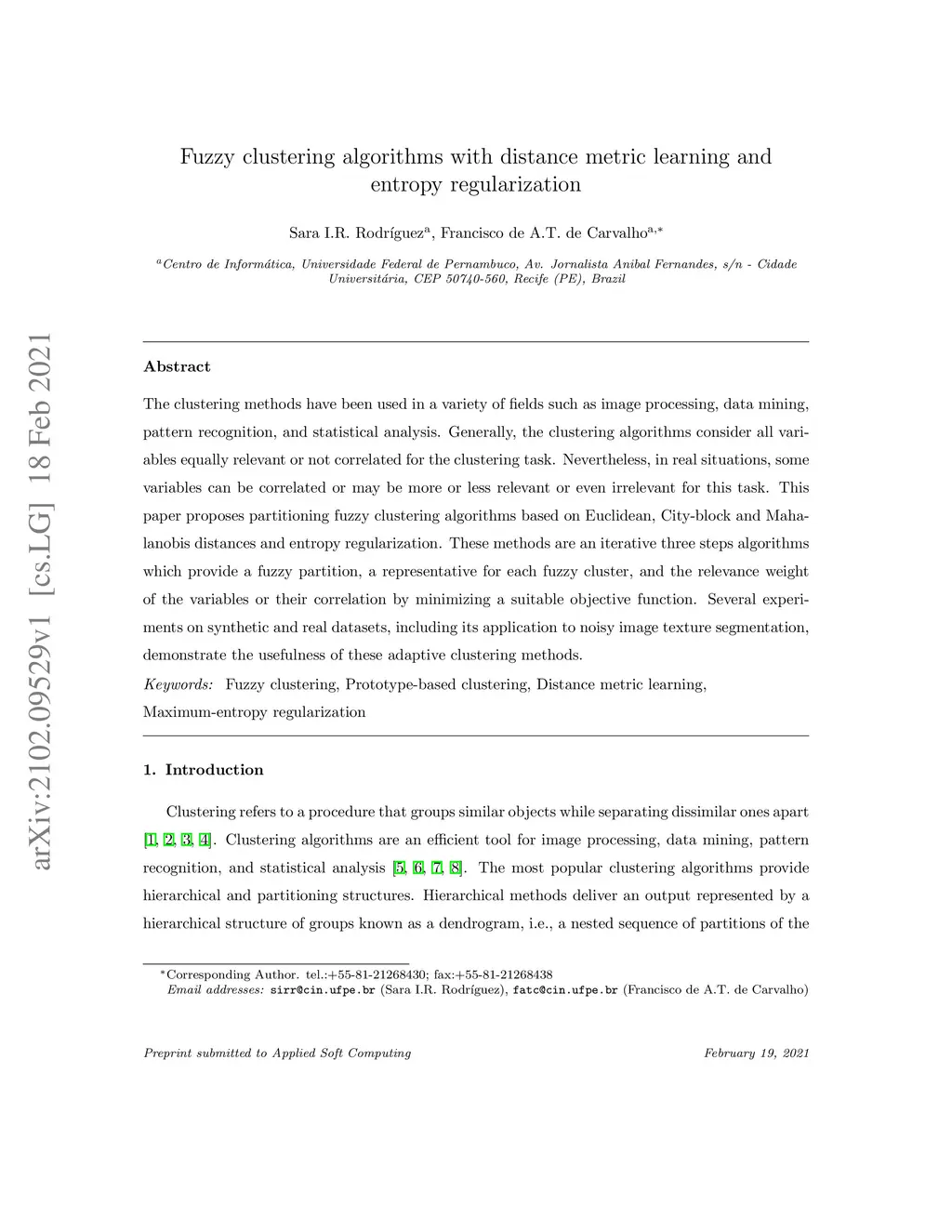 Fuzzy clustering algorithms with distance metric learning and entropy