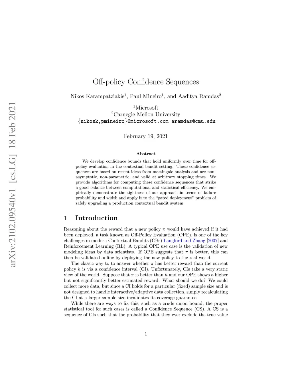 We develop confidence bounds that hold uniformly over time for off-policy evaluation in the contextual bandit setting. These confidence sequences are based on recent ideas from martingale analysis and are non-asymptotic, non-parametric, and valid at arbitrary stopping times. We provide algorithms for computing these confidence sequences that strike a good balance between computational and statistical efficiency. We empirically demonstrate the tightness of our approach in terms of failure probability and width and apply it to the "gated deployment" problem of safely upgrading a production contextual bandit system.