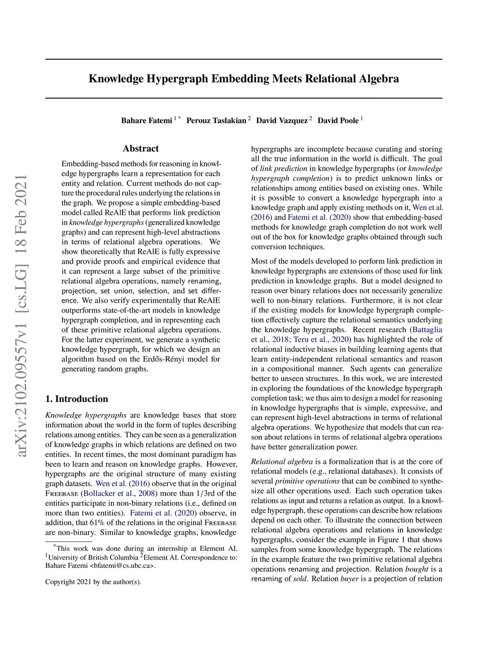 Knowledge Hypergraph Embedding Meets Relational Algebra