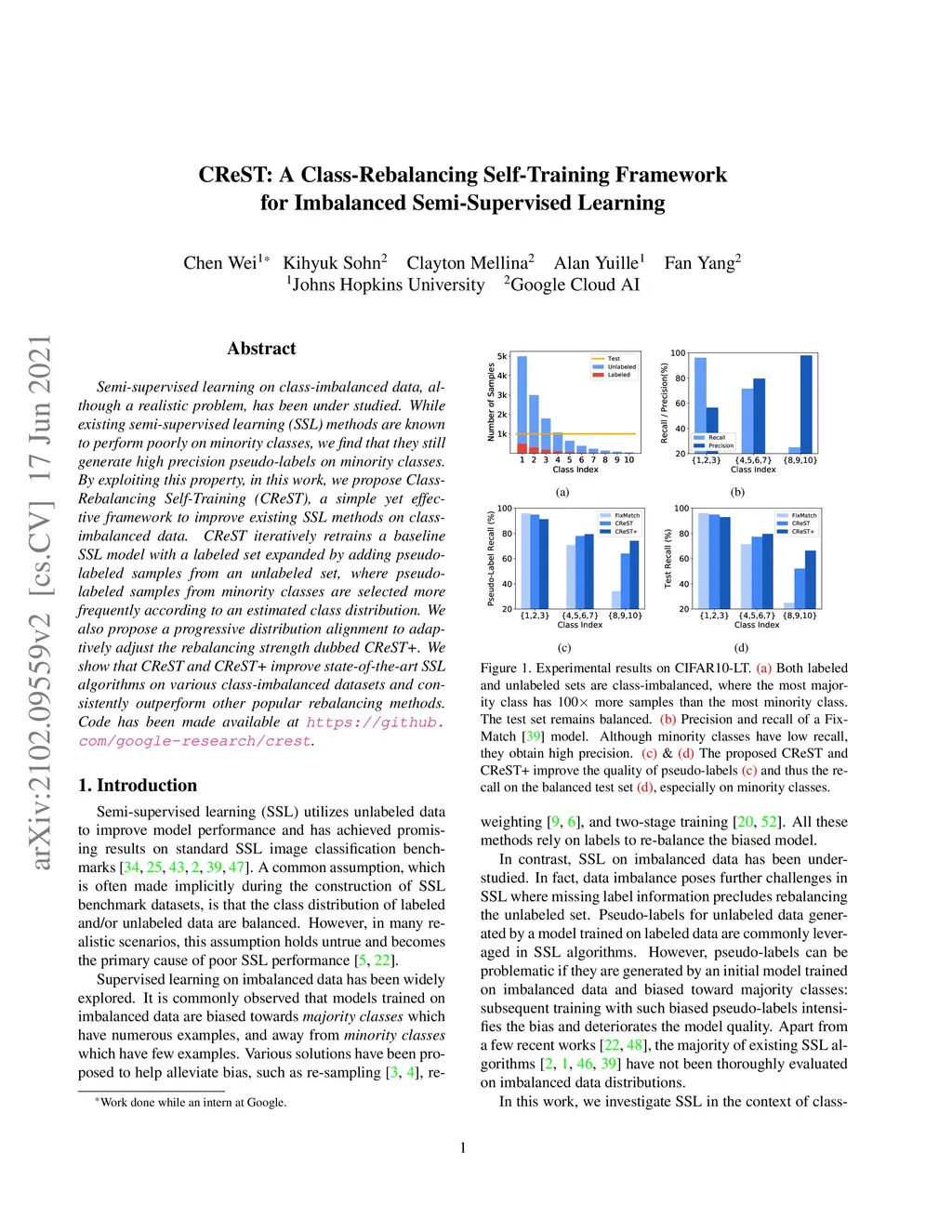 CReST: A Class-Rebalancing Self-Training Framework for Imbalanced