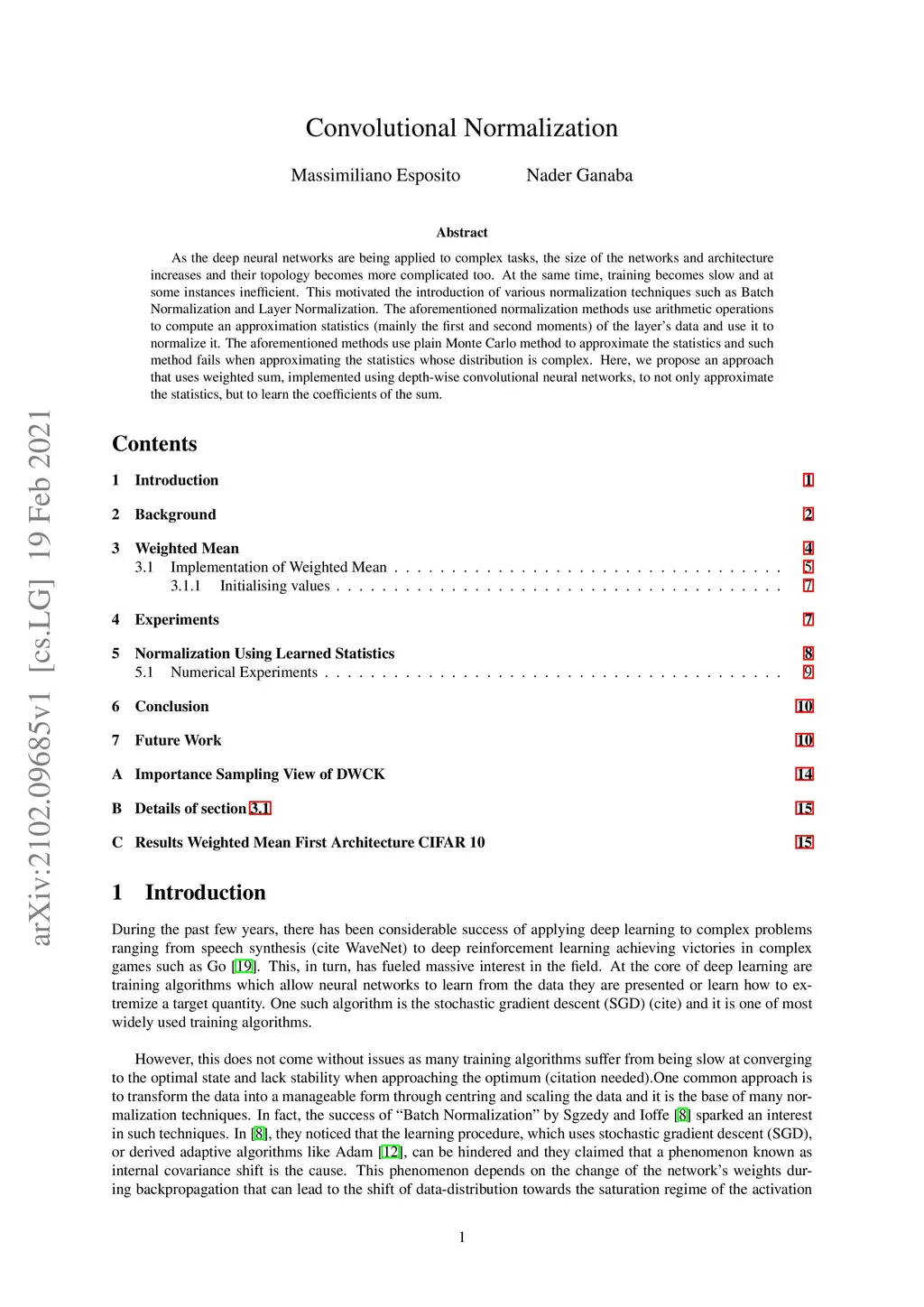 As the deep neural networks are being applied to complex tasks, the size of the networks and architecture increases and their topology becomes more complicated too. At the same time, training becomes slow and at some instances inefficient. This motivated the introduction of various normalization techniques such as Batch Normalization and Layer Normalization. The aforementioned normalization methods use arithmetic operations to compute an approximation statistics (mainly the first and second moments) of the layer's data and use it to normalize it. The aforementioned methods use plain Monte Carlo method to approximate the statistics and such method fails when approximating the statistics whose distribution is complex. Here, we propose an approach that uses weighted sum, implemented using depth-wise convolutional neural networks, to not only approximate the statistics, but to learn the coefficients of the sum.