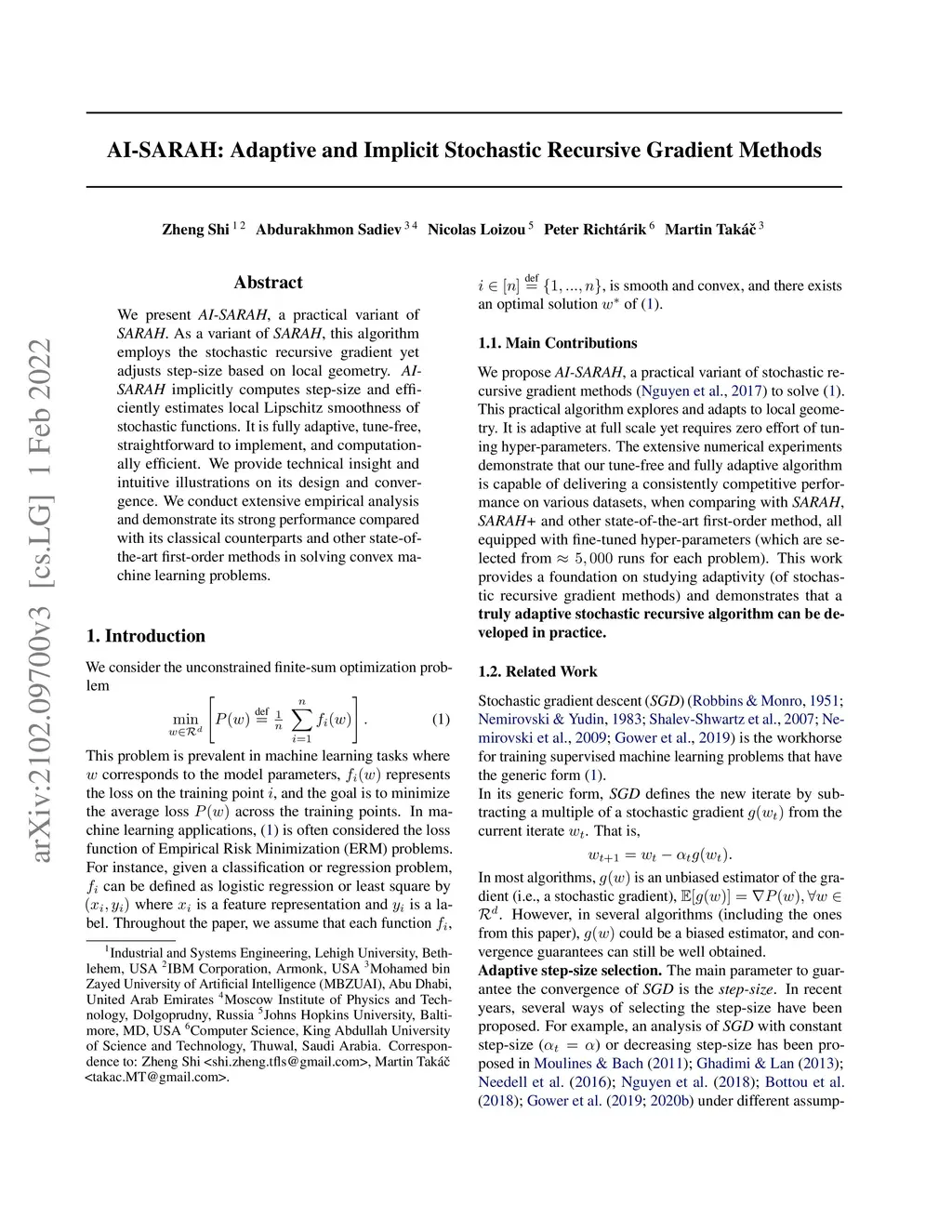 AI-SARAH: Adaptive and Implicit Stochastic Recursive Gradient Methods
