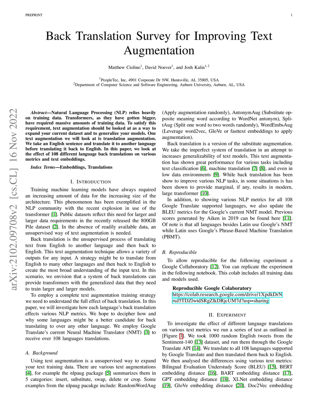 Back Translation Survey for Improving Text Augmentation