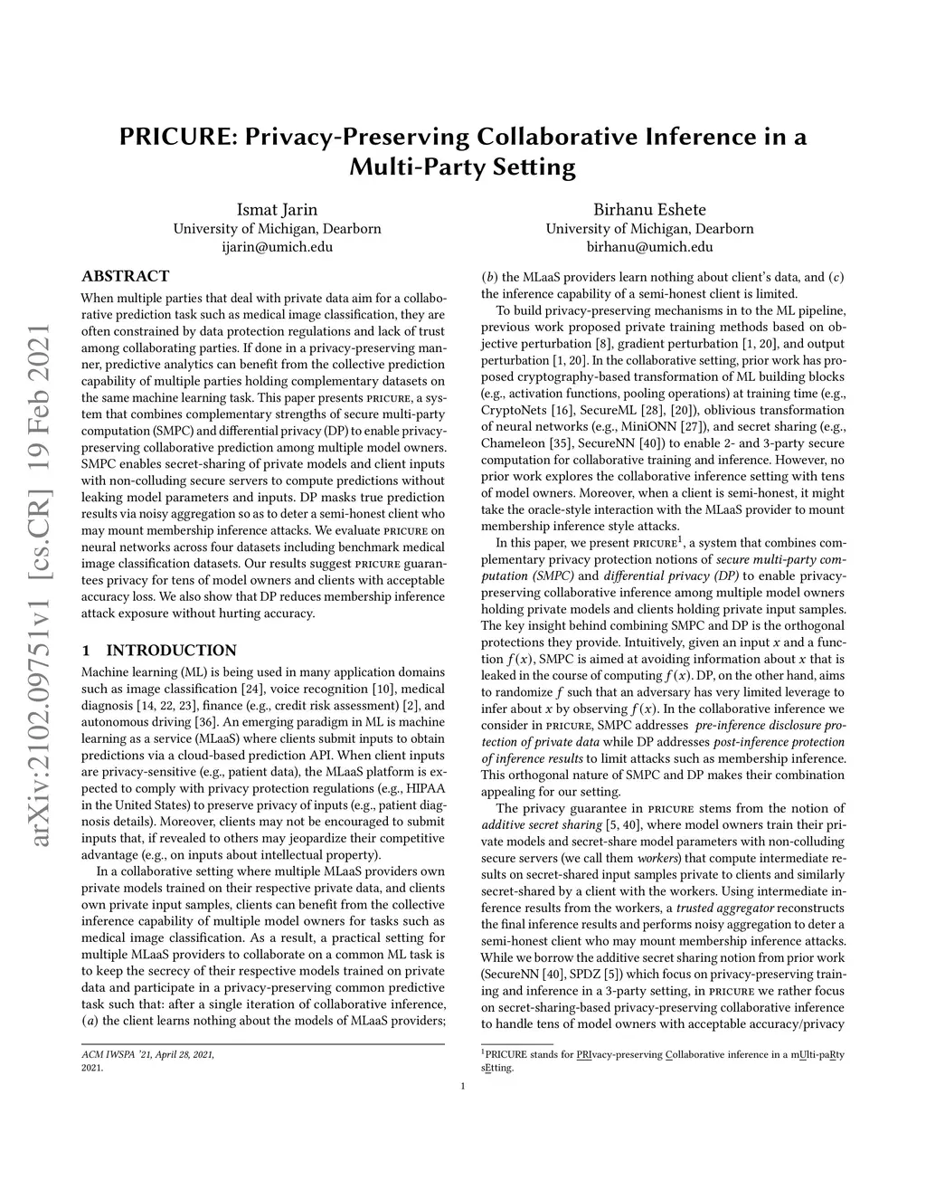 PRICURE: Privacy-Preserving Collaborative Inference in a Multi-Party