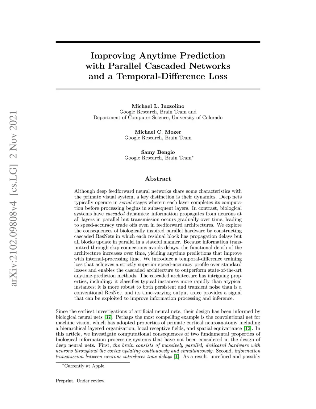 Improving Anytime Prediction with Parallel Cascaded Networks and a