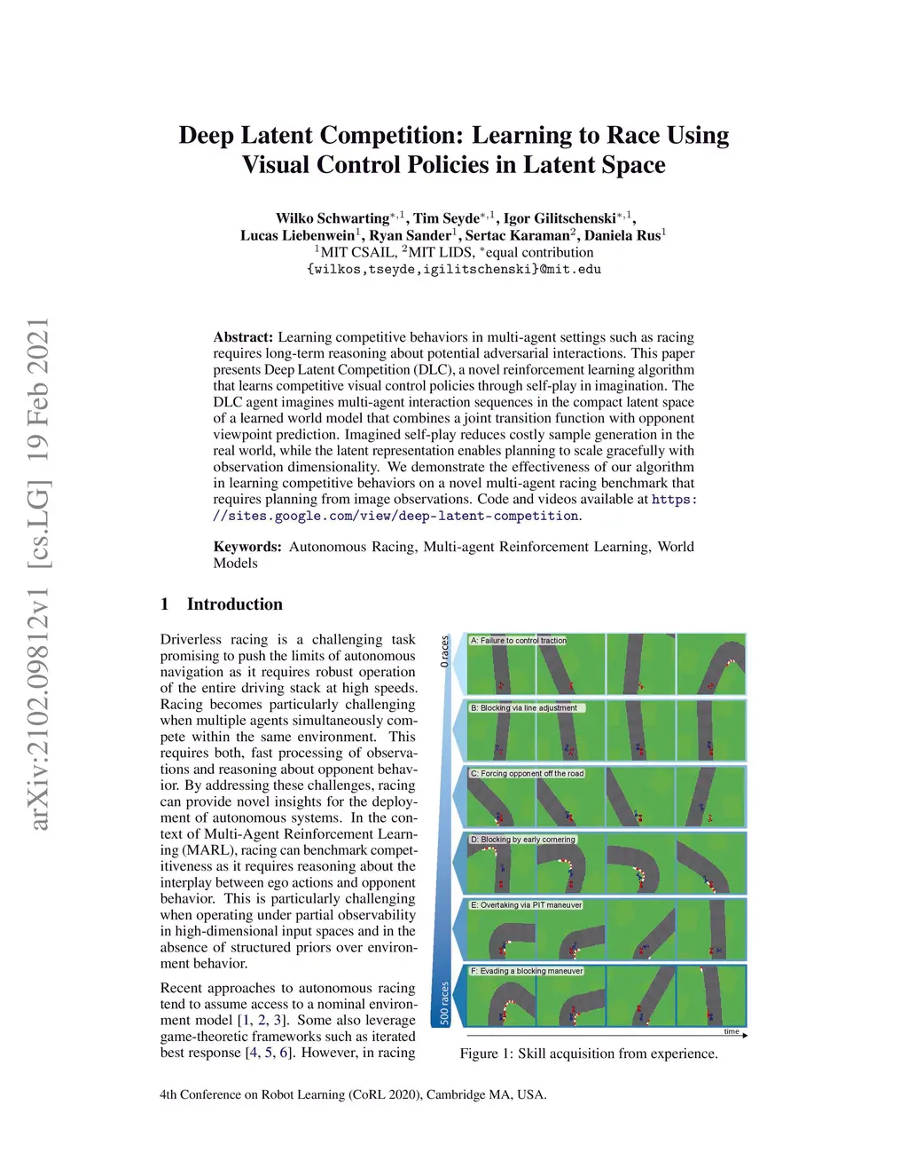 Deep Latent Competition: Learning to Race Using Visual Control Policies