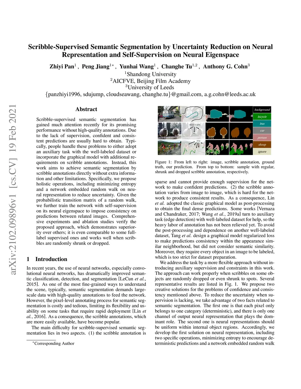 Scribble-supervised semantic segmentation has gained much attention recently for its promising performance without high-quality annotations. Due to the lack of supervision, confident and consistent predictions are usually hard to obtain. Typically, people handle these problems to either adopt an auxiliary task with the well-labeled dataset or incorporate the graphical model with additional requirements on scribble annotations. Instead, this work aims to achieve semantic segmentation by scribble annotations directly without extra information and other limitations. Specifically, we propose holistic operations, including minimizing entropy and a network embedded random walk on neural representation to reduce uncertainty. Given the probabilistic transition matrix of a random walk, we further train the network with self-supervision on its neural eigenspace to impose consistency on predictions between related images. Comprehensive experiments and ablation studies verify the proposed approach, which demonstrates superiority over others; it is even comparable to some full-label supervised ones and works well when scribbles are randomly shrunk or dropped.