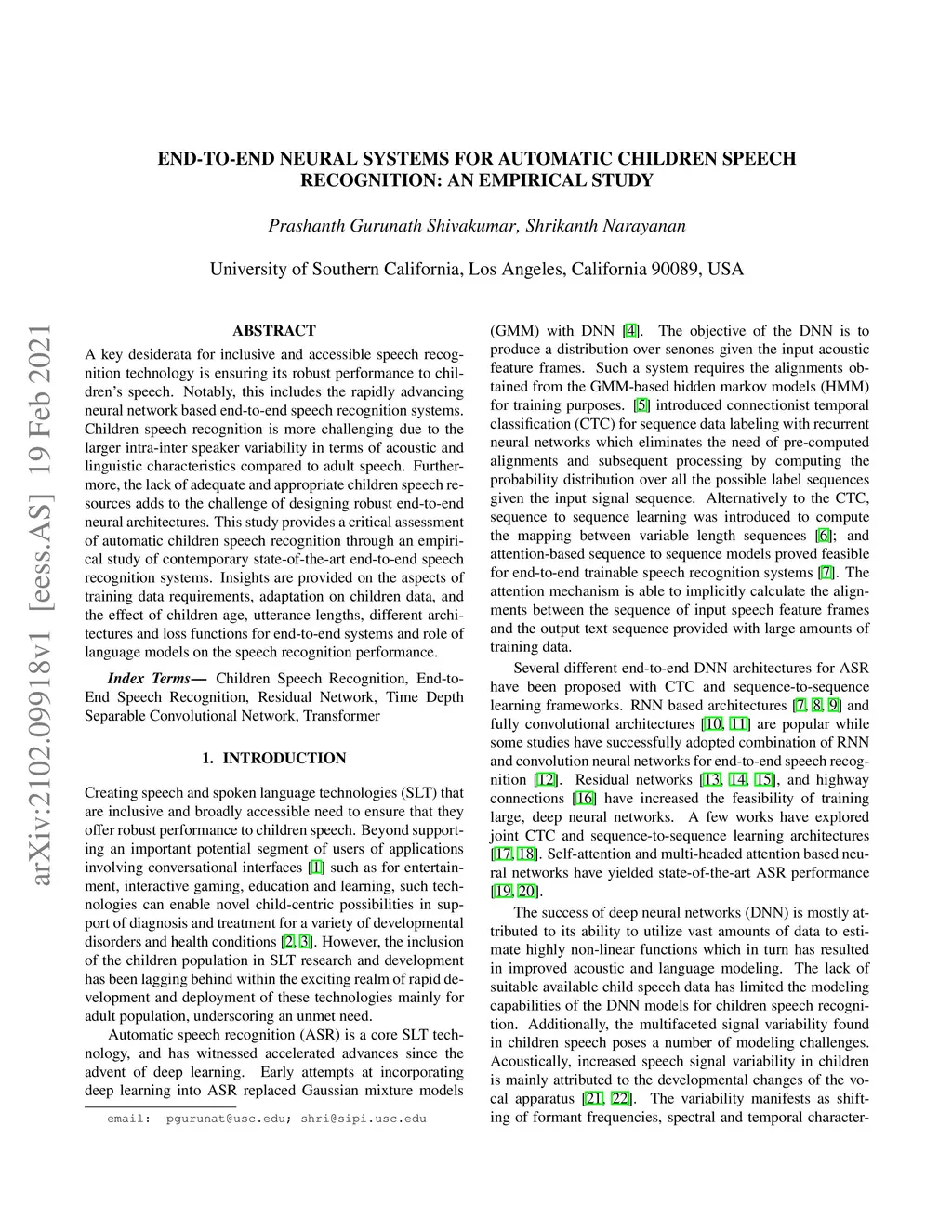 End-to-End Neural Systems for Automatic Children Speech Recognition: An