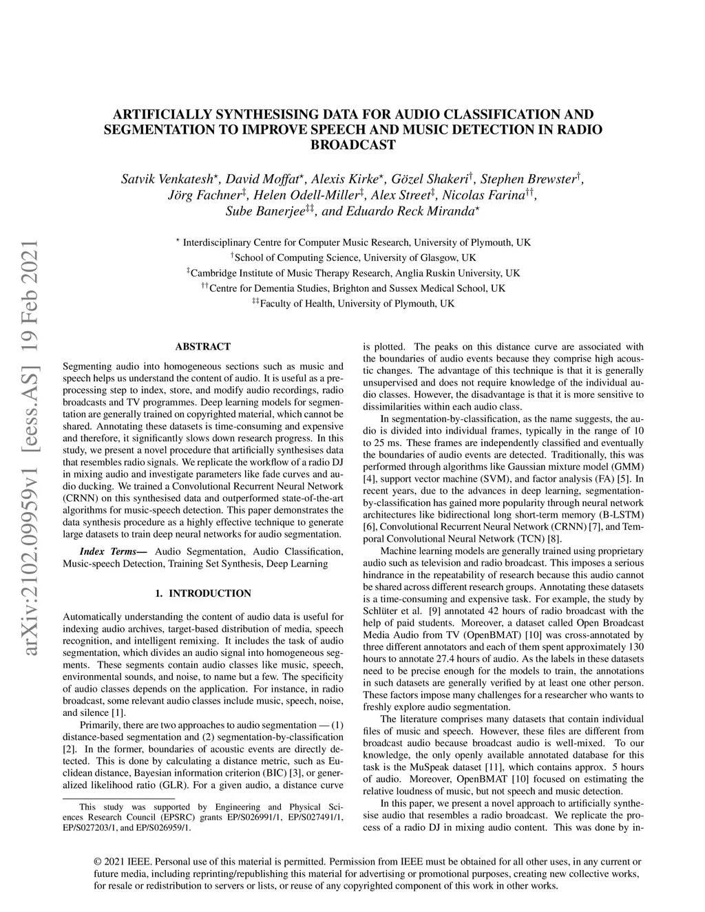 Artificially Synthesising Data for Audio Classification and Segmentation