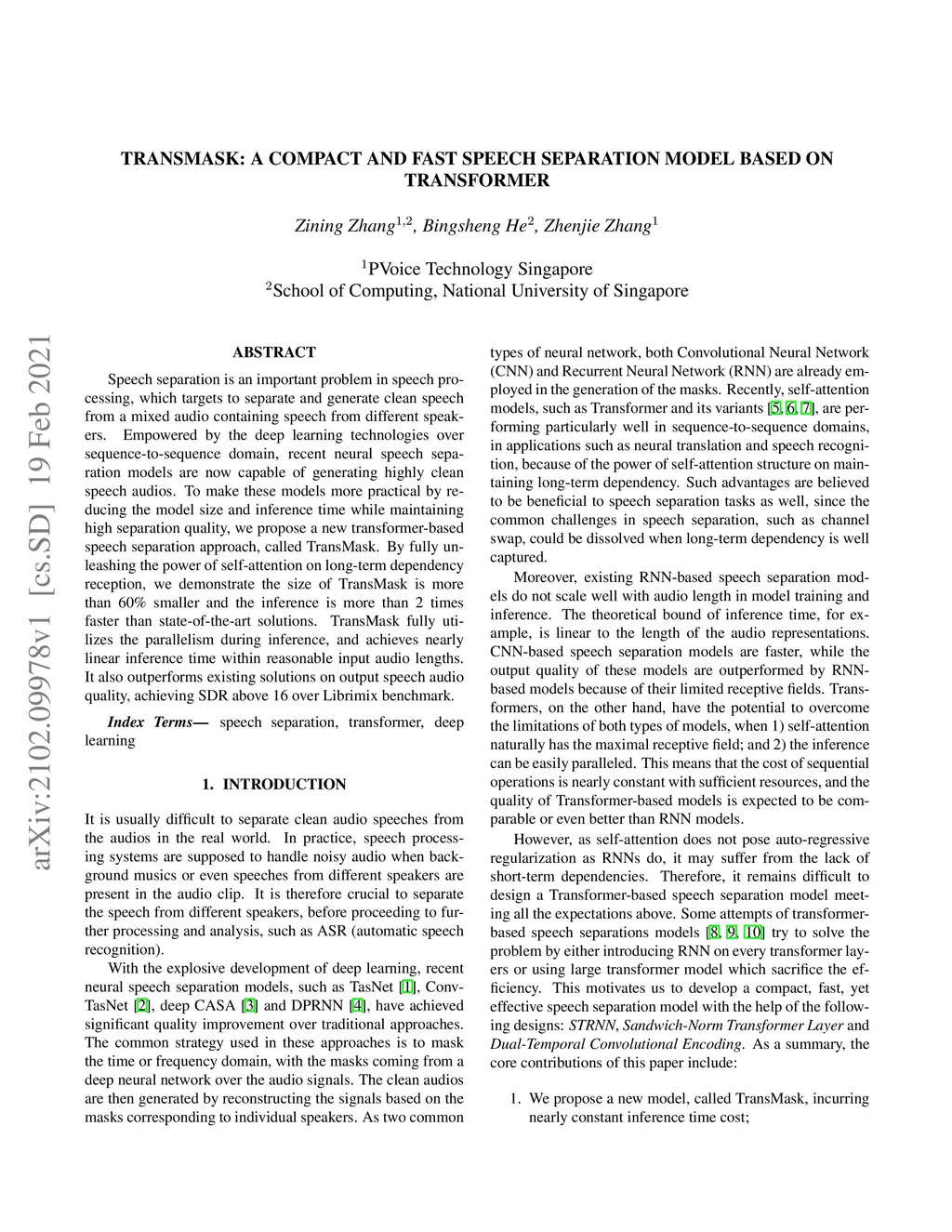 Speech separation is an important problem in speech processing, which targets to separate and generate clean speech from a mixed audio containing speech from different speakers. Empowered by the deep learning technologies over sequence-to-sequence domain, recent neural speech separation models are now capable of generating highly clean speech audios. To make these models more practical by reducing the model size and inference time while maintaining high separation quality, we propose a new transformer-based speech separation approach, called TransMask. By fully un-leashing the power of self-attention on long-term dependency exception, we demonstrate the size of TransMask is more than 60% smaller and the inference is more than 2 times faster than state-of-the-art solutions. TransMask fully utilizes the parallelism during inference, and achieves nearly linear inference time within reasonable input audio lengths. It also outperforms existing solutions on output speech audio quality, achieving SDR above 16 over Librimix benchmark.