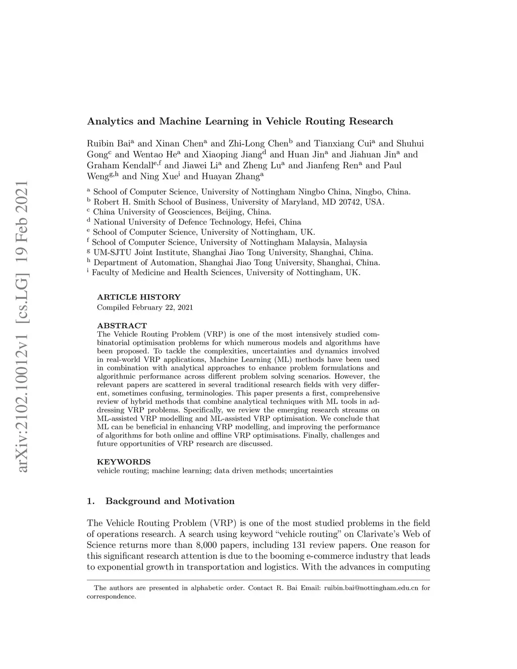 Analytics and Machine Learning in Vehicle Routing Research