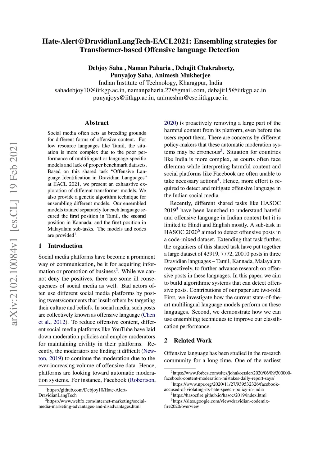 Hate-Alert@DravidianLangTech-EACL2021: Ensembling strategies for