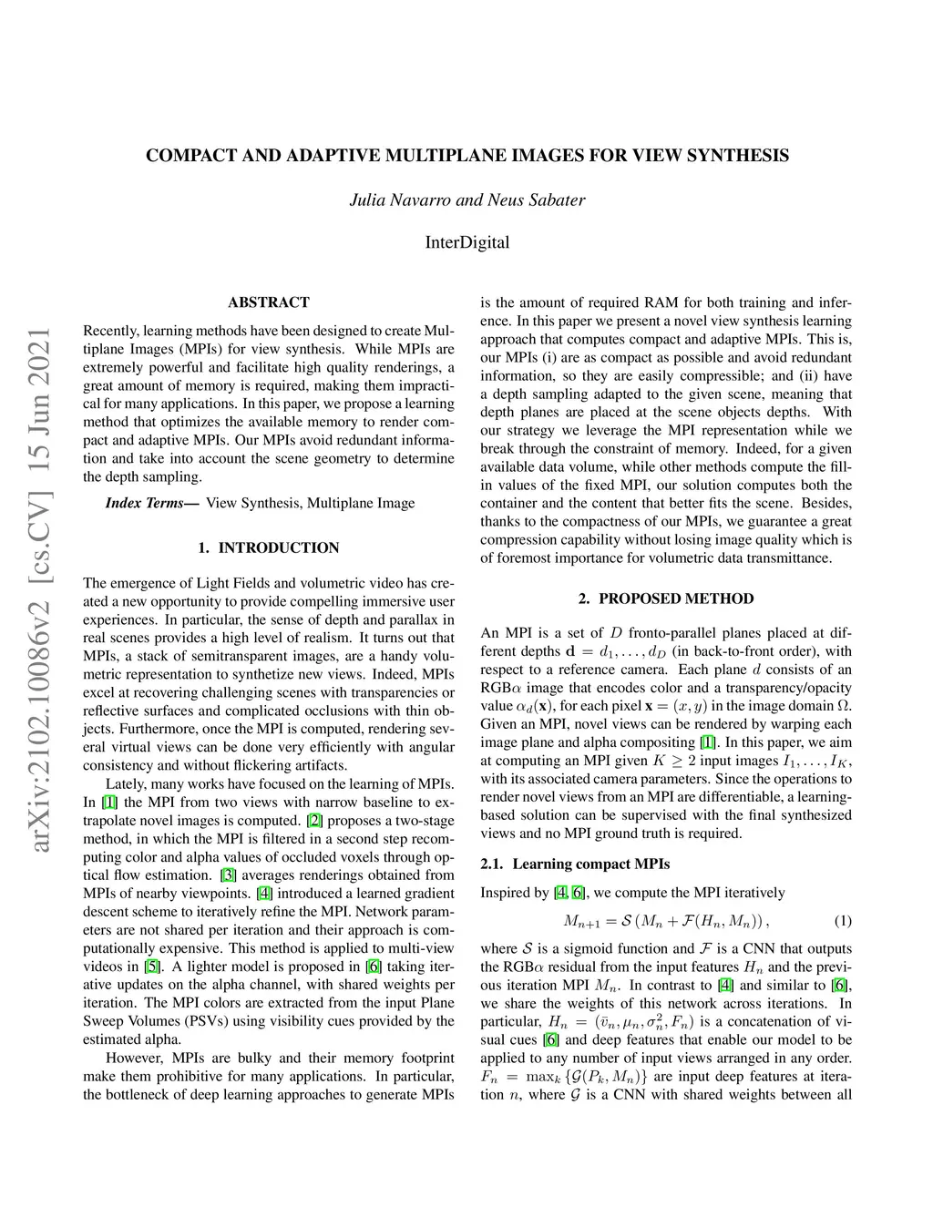 Compact and adaptive multiplane images for view synthesis