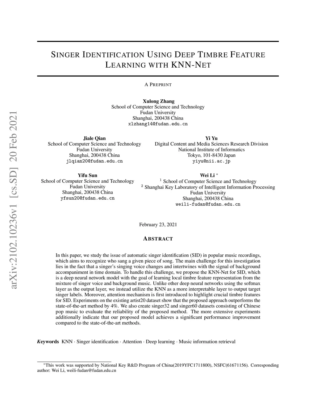 Singer Identification Using Deep Timbre Feature Learning with KNN-Net