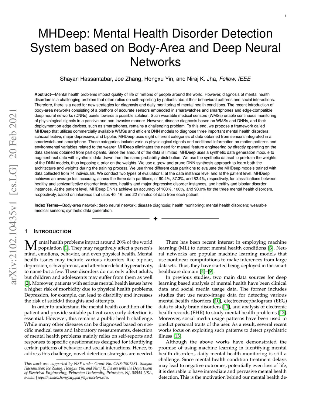 MHDeep: Mental Health Disorder Detection System based on Body-Area and
