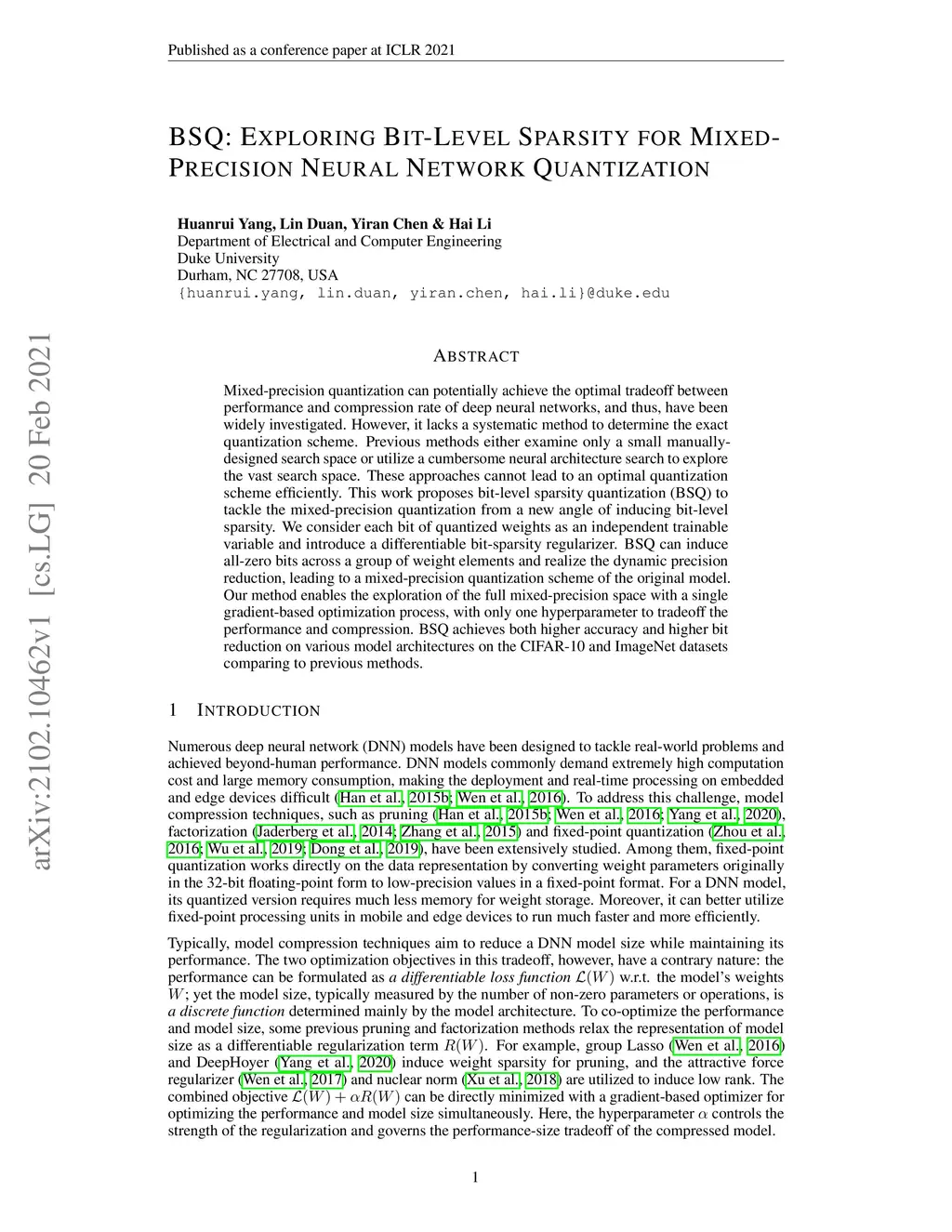 BSQ: Exploring Bit-Level Sparsity for Mixed-Precision Neural Network