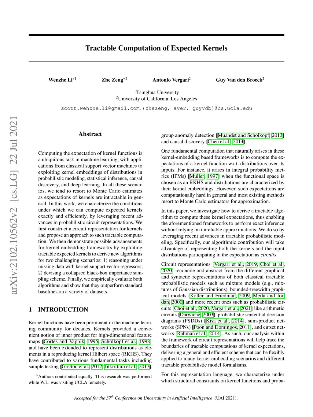Tractable Computation of Expected Kernels
