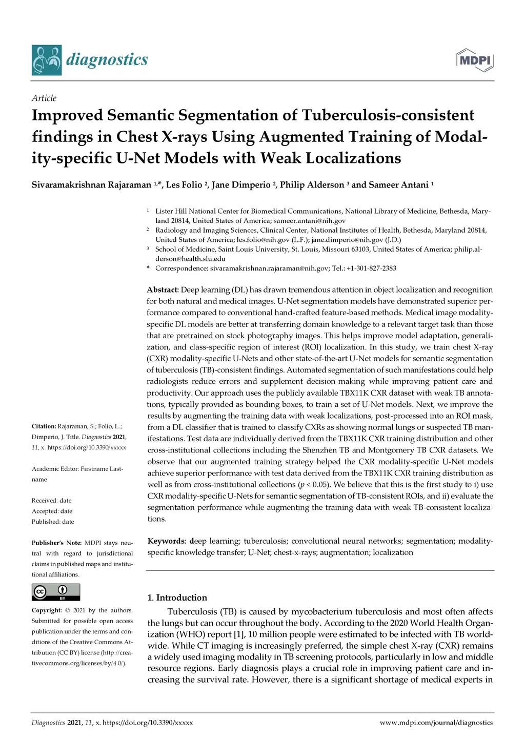 Deep learning (DL) has drawn tremendous attention in object localization and recognition for both natural and medical images. U-Net segmentation models have demonstrated superior performance compared to conventional handcrafted feature-based methods. Medical image modality-specific DL models are better at transferring domain knowledge to a relevant target task than those that are pretrained on stock photography images. This helps improve model adaptation, generalization, and class-specific region of interest (ROI) localization. In this study, we train chest X-ray (CXR) modality-specific U-Nets and other state-of-the-art U-Net models for semantic segmentation of tuberculosis (TB)-consistent findings. Automated segmentation of such manifestations could help radiologists reduce errors and supplement decision-making while improving patient care and productivity. Our approach uses the publicly available TBX11K CXR dataset with weak TB annotations, typically provided as bounding boxes, to train a set of U-Net models. Next, we improve the results by augmenting the training data with weak localizations, post-processed into an ROI mask, from a DL classifier that is trained to classify CXRs as showing normal lungs or suspected TB manifestations. Test data are individually derived from the TBX11K CXR training distribution and other cross-institutional collections including the Shenzhen TB and Montgomery TB CXR datasets. We observe that our augmented training strategy helped the CXR modality-specific U-Net models achieve superior performance with test data derived from the TBX11K CXR training distribution as well as from cross-institutional collections (p < 0.05).