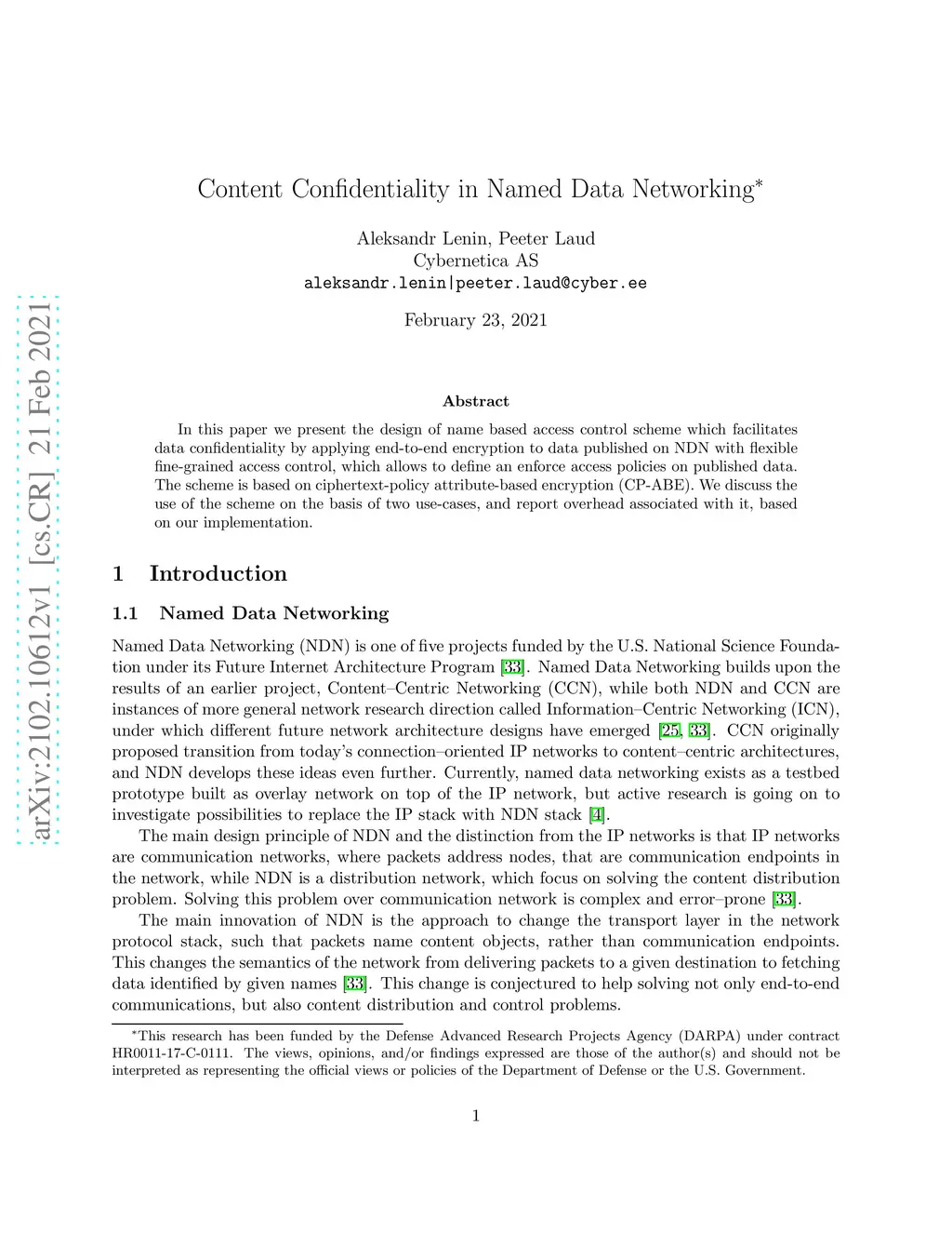 Content Confidentiality in Named Data Networking