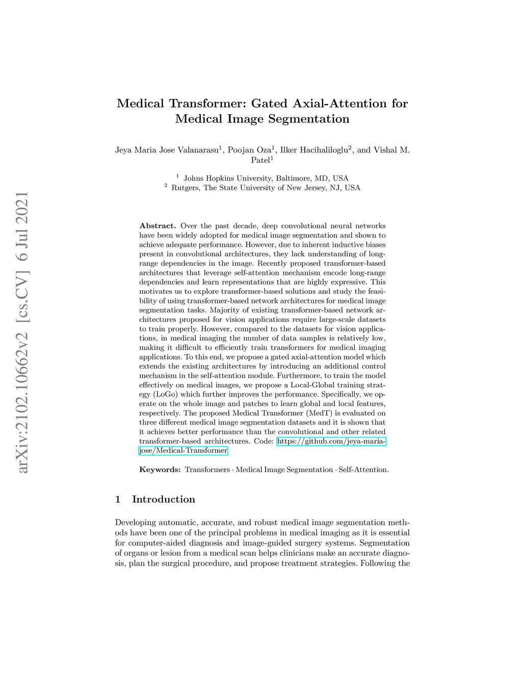Medical Transformer: Gated Axial-Attention for Medical Image Segmentation