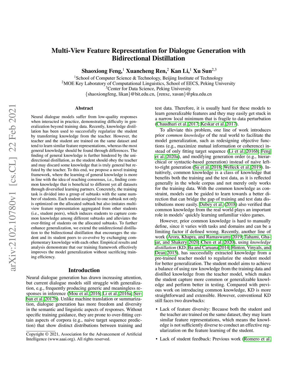 Multi-View Feature Representation for Dialogue Generation with