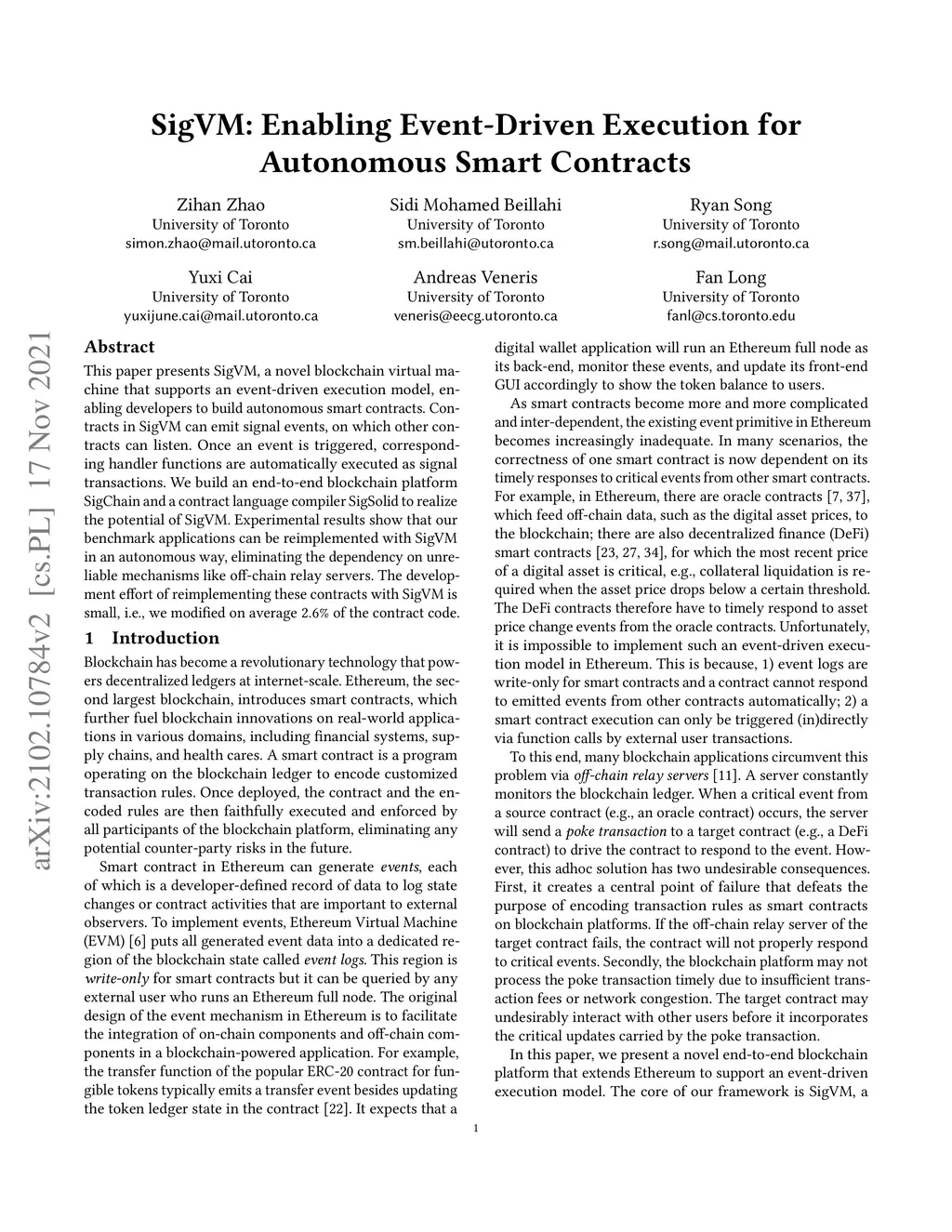 SigVM: Enabling Event-Driven Execution for Autonomous Smart Contracts