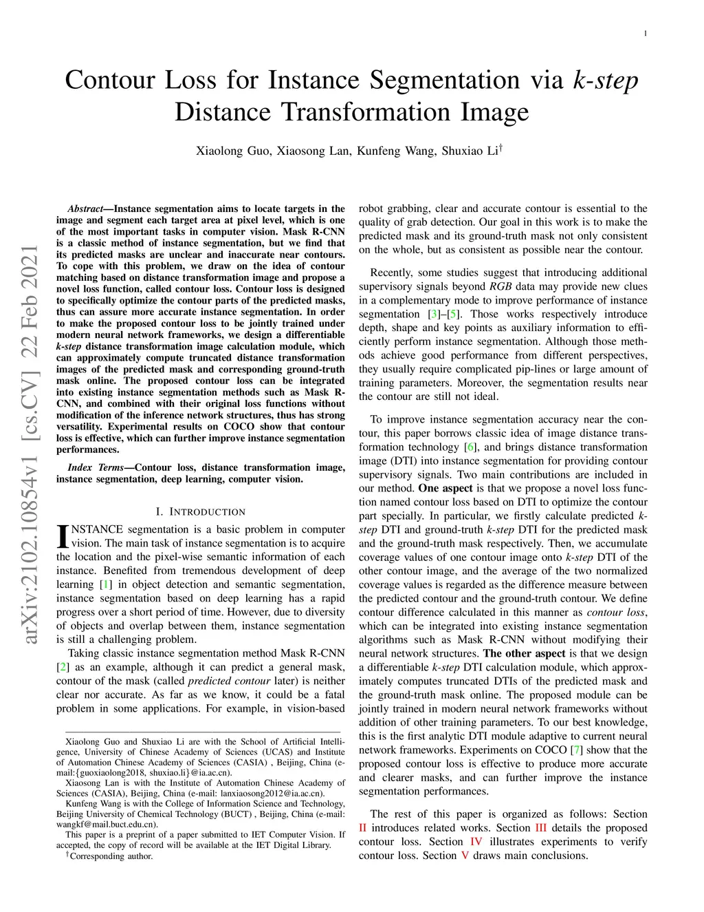 Instance segmentation aims to locate targets in the image and segment each target area at pixel level, which is one of the most important tasks in computer vision. Mask R-CNN is a classic method of instance segmentation, but we find that its predicted masks are unclear and inaccurate near contours. To cope with this problem, we draw on the idea of contour matching based on distance transformation image and propose a novel loss function, called contour loss. Contour loss is designed to specifically optimize the contour parts of the predicted masks, thus can assure more accurate instance segmentation. In order to make the proposed contour loss to be jointly trained under modern neural network frameworks, we design a differentiable k-step distance transformation image calculation module, which can approximately compute truncated distance transformation images of the predicted mask and corresponding ground-truth mask online. The proposed contour loss can be integrated into existing instance segmentation methods such as Mask R-CNN, and combined with their original loss functions without modification of the inference network structures, thus has strong versatility. Experimental results on COCO show that contour loss is effective, which can further improve instance segmentation performances.