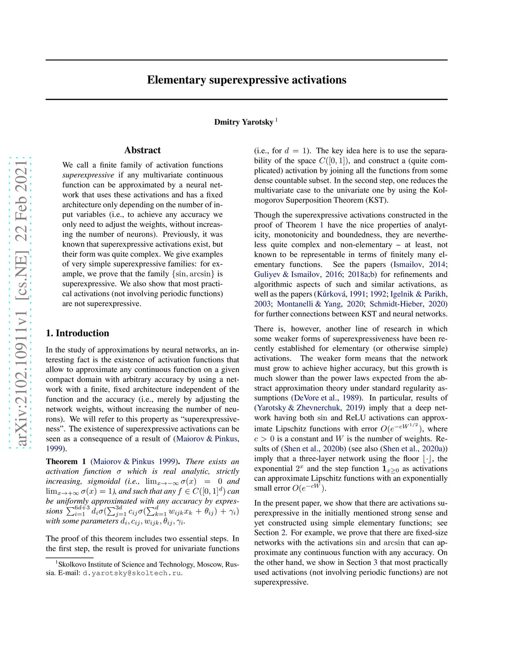 Elementary superexpressive activations