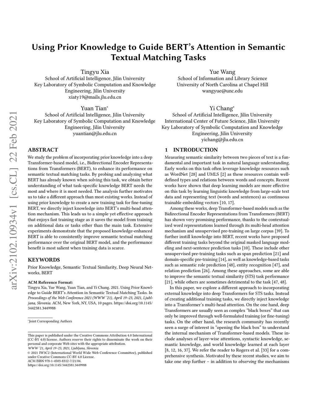 Using Prior Knowledge to Guide BERT's Attention in Semantic Textual