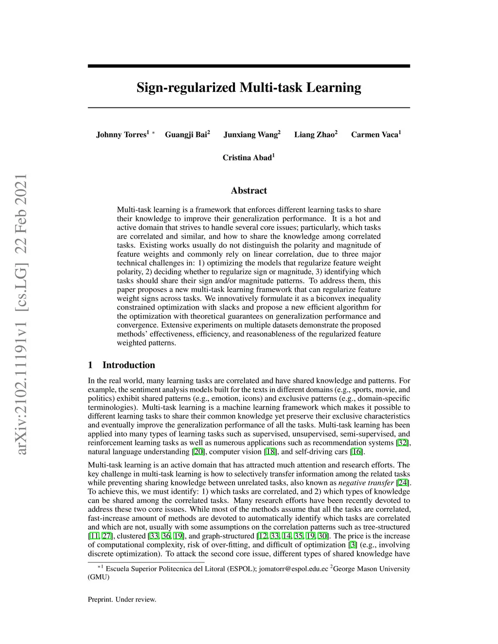 Multi-task learning is a framework that enforces different learning tasks to share their knowledge to improve their generalization performance. It is a hot and active domain that strives to handle several core issues; particularly, which tasks are correlated and similar, and how to share the knowledge among correlated tasks. Existing works usually do not distinguish the polarity and magnitude of feature weights and commonly rely on linear correlation, due to three major technical challenges in: 1) optimizing the models that regularize feature weight polarity, 2) deciding whether to regularize sign or magnitude, 3) identifying which tasks should share their sign and/or magnitude patterns. To address them, this paper proposes a new multi-task learning framework that can regularize feature weight signs across tasks. We innovatively formulate it as a biconvex inequality constrained optimization with slacks and propose a new efficient algorithm for the optimization with theoretical guarantees on generalization performance and convergence. Extensive experiments on multiple datasets demonstrate the proposed methods' effectiveness, efficiency, and reasonableness of the regularized feature weighted patterns.