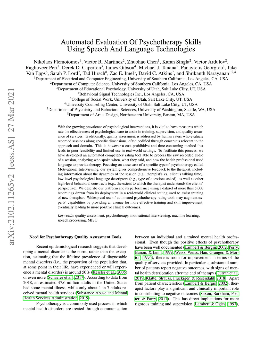 Automated Evaluation Of Psychotherapy Skills Using Speech And Language